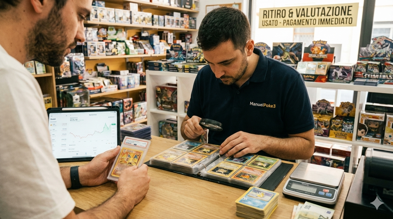 Da ManuelPoke3 non siamo solo un negozio, ma il punto di riferimento per il mondo del TCG e delle Carte Collezionabili. Siamo il tuo supporto completo per valorizzare la tua passione: dal restauro conservativo al grading professionale, fino alla valutazione e ritiro del tuo usato. Ecco come ci prendiamo cura della tua collezione: